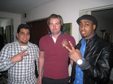 man ser att gt är fett solbränd på bilden när han står med threat & jaegarn