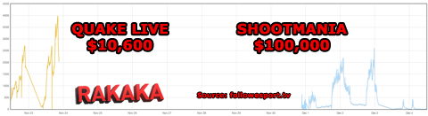 En skön site för streamsiffror har vuxit fram den senaste tiden. Followesport.tv. Efter DreamHack Winter 2012 och IPL5 tog jag och jämförde de båda evenemangen. Kom ihåg att IPL5 endast kör tre olika spel och att Shootmania hade 10 gånger så mycket prispengar. Spana i jämförelsen nedan.