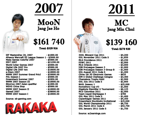 Fortsätter här med att utbilda nytillkomna esportälskare. Jang "MC" Min Chul är den SC2-spelare som har lirat ihop mest prispengar i StarCraft II. Trots detta blir hans 2011 slaget av MooN storhetsår 2007 då prispengarna och lönerna var högre än någonsin, väl värt att notera är att MooN fortfarande ligger före MC i totalt inspelade prispengar.
